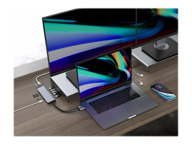HyperDrive VIPER 10-in-2 Hub - Station d'accueil - USB-C - 2 x HDMI - 1GbE - pour Apple 10.9-inch iPad Air (4th generation); 11-inch iPad Pro (1st generation, 2nd gen, 3rd gen); 12.9-inch iPad Pro (3rd generation, 4th generation, 5th generation); MacBook Air (Late 2018, Late 2020); MacBook Pro (Early 2020, Late 2016, Late 2019, Late 2020, Mid 2017, Mid 2018, Mid 2019) HD392-GRAY