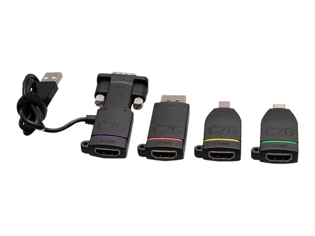 C2G Universal 4K HDMI Adapter Ring with Mini DisplayPort, DisplayPort, USB C, Lightning, and VGA - M/F - Kit d'adaptateur vidéo - noir - support 4K