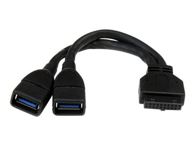StarTech.com Câble adaptateur USB 3.0 IDC 20 broches à 2 ports USB A de 15 cm - Adaptateur interne carte mère vers 2x USB 3.0 A (F) - Adpatateur interne USB - USB type A (F) pour tête 20 broches USB 3.0 (F) - 15.24 cm - noir