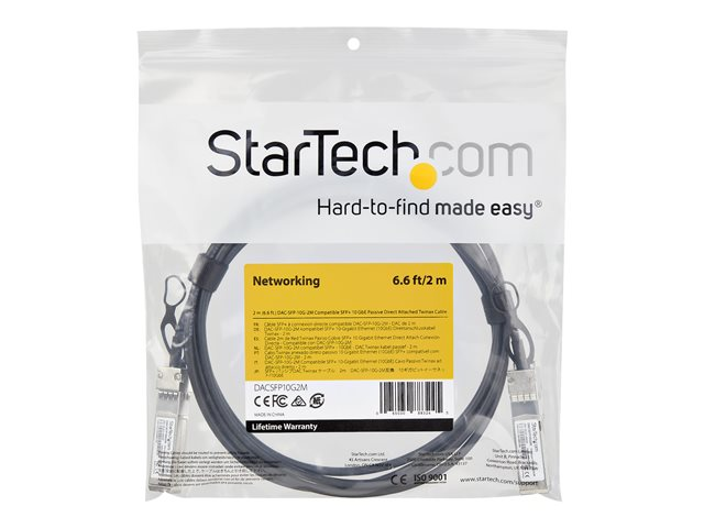 StarTech.com Cable Twinax a fixation directe SFP+ compatible Dell EMC DAC-SFP-10G-2M - 2m - 10 Gbps - Cable en cuivre passif (DACSFP10G2M) - Câble d'attache directe 10GBase - SFP+ (P) verrouillé pour SFP+ (P) verrouillé - 2 m - twinaxial - passif DACSFP10G2M