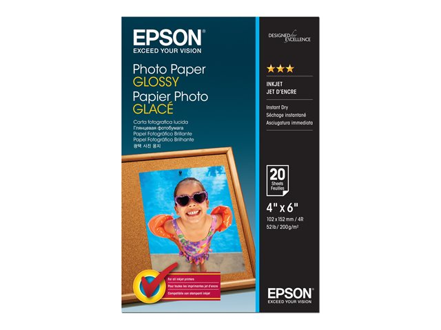 Epson - Brillant - 102 x 152 mm - 200 g/m² - 20 feuille(s) papier photo - pour EcoTank ET-2850, 2851, 2856, 4850; EcoTank Photo ET-8500; EcoTank Pro ET-5800