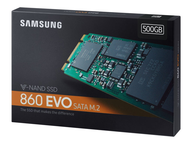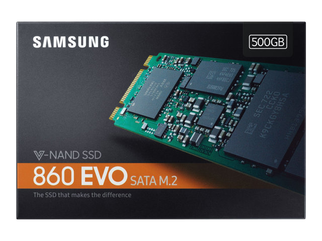 Samsung 860 EVO MZ-N6E500BW - SSD - chiffré - 500 Go - interne - M.2 2280 - SATA 6Gb/s - mémoire tampon : 512 Mo - AES 256 bits - TCG Opal Encryption 2.0