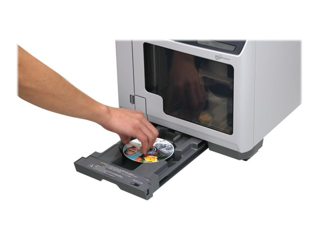 Aussi facile à utiliser qu'une imprimante bureautique, l'Epson PP-100AP peut imprimer jusqu'à 100 CD/DVD en une seule session, à un rythme de production pouvantaller jusqu'à 95 CD/heure. C'est également le seul produit de sa gamme ou l'ensemble des opérations de production et de contrôle se font en face avant.