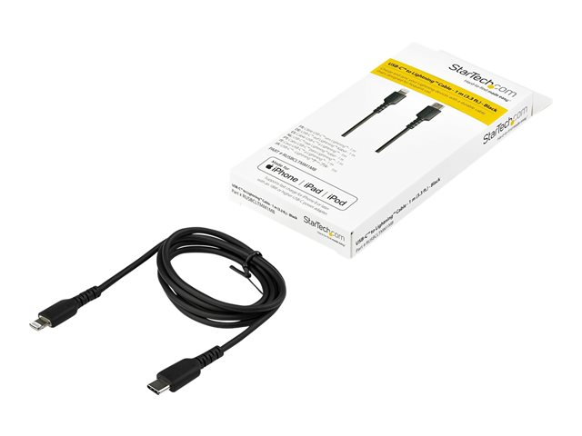 Ce câble USB C 1m Noir vers Lightning résiste aux exigences quotidiennes de chargement et de synchronisation de votre iPad, iPhone ou autres appareils mobiles équipés du connecteur Lightning. Testé pour résister à l''usure et à l''utilisation en voiture en hiver comme en été, ce câble solide et robuste est idéal pour les applications professionnelles et grand public.