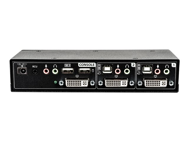 | Interfaces | 2 x entrée DVI-I (double connexion) 1 x clavier (USB) Type A 2 x clavier (USB) / souris (USB) Type B 1 x sortie DVI-I (double connexion) 1 x souris (USB) Type A 2 x sortie microphone mini-jack 1 x entrée microphone mini-jack 2 x entrée casque mini-jack 1 x sortie casque mini-jack |